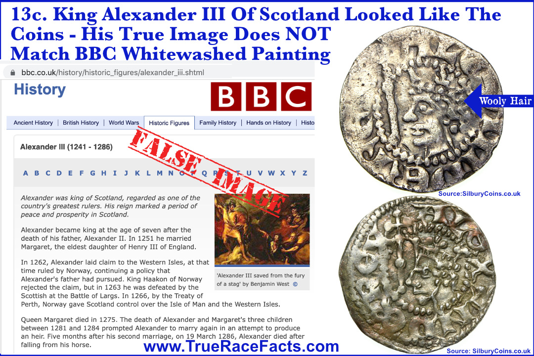 The majority of art and images depicting the ancient dark brown, aka BLACK nobility, will use the term “Artistic Expression” this term is code for LYING. It means you can make a person what you want, even if it is a FAKE depiction. Imagine if we suddenly turned Queen Elizabeth II of England into a dark brown woman? Many would have a problem with it, and rightly so. So for those that say it does not matter what colour the ancient people were, that example might help you better understand why it is not right. Based on this website’s data and the BBC’s seven pages of dark brown, aka BLACK history. I’m sure you’ll agree, even if you are a racist that the BBC is not honest regarding the history of England, Ireland, Scotland and Europe. See BBC-Black-British-Summary PDF