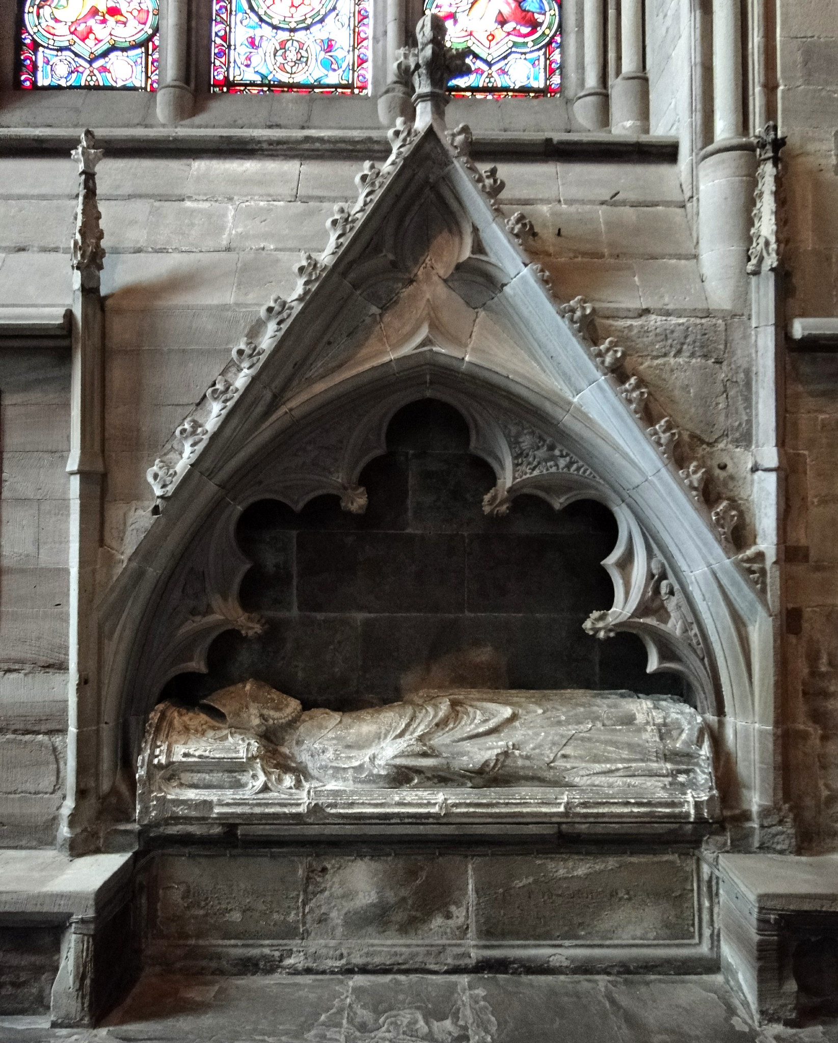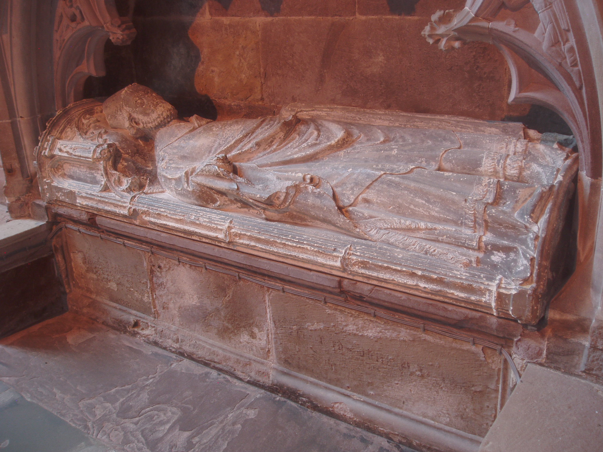 The effigy of Bishop Charlton, who died in 1343, preserves the presence of a senior medieval churchman whose authority rested not only in ecclesiastical office, but in lineage, learning, and sacred tradition. His monument reflects the visual language of fourteenth-century episcopal identity — dignity, permanence, and spiritual inheritance carved into stone.