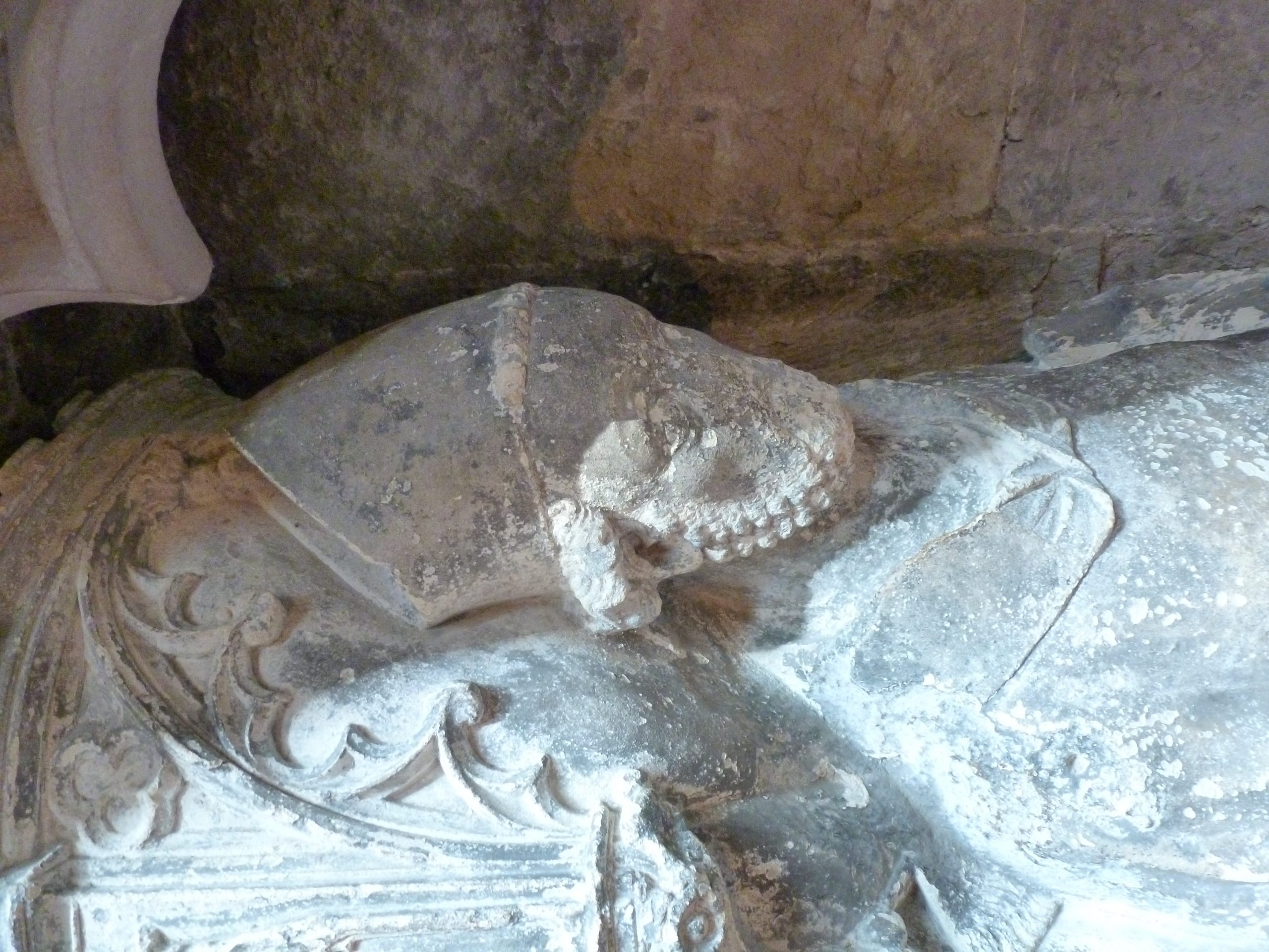 Even with alteration, the original modelling is still legible. The structure of the face — its breadth, proportion, and underlying form — preserves the likeness of a swarthy medieval churchman, a phenotype once present and recorded before later handling softened what had been carved.