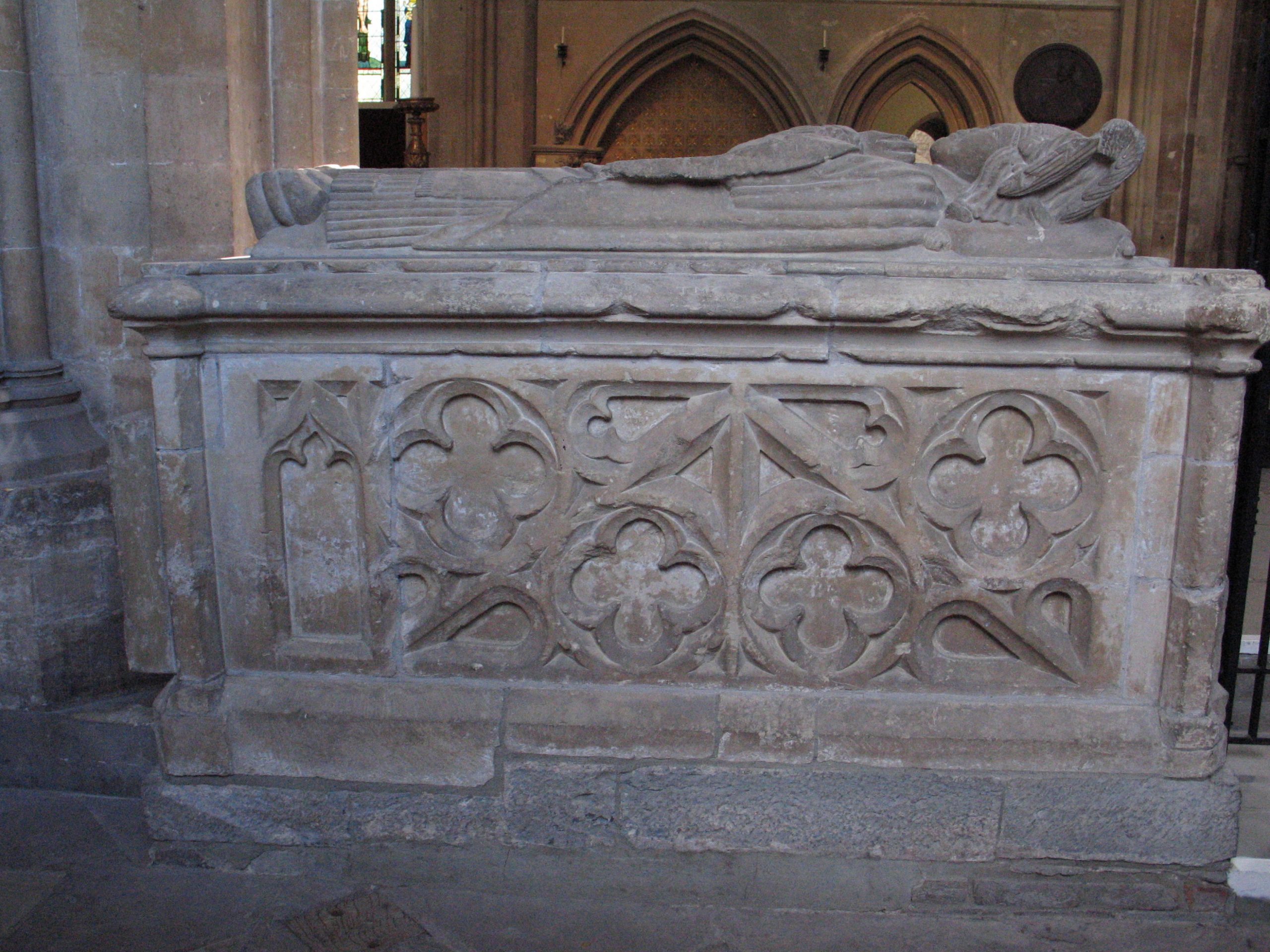 His burial within the cathedral and the commissioning of an effigy confirm his high status. Medieval effigies of bishops were expensive undertakings, reserved for men whose authority and family standing warranted permanent commemoration in stone.
