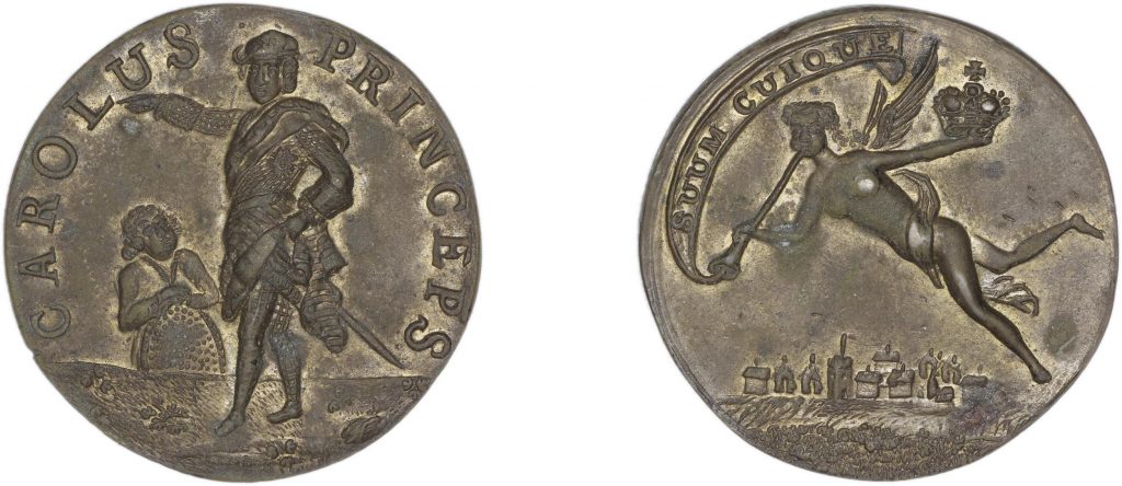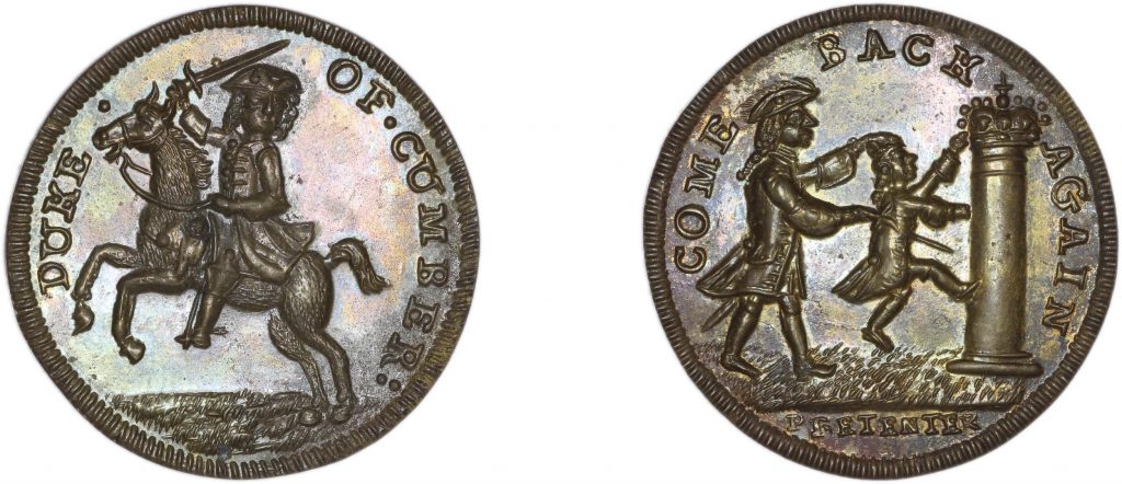 Bronze medal. British Museum No. 8543 ZOOM in and you will notice that the Prince Charles Stuart phenotype is that of a melanated man aka the so-called BLACK man. William, Duke of Cumberland on horseback, galloping, left; sword drawn. (obverse) Prince Charles (the Young Pretender), attempting to snatch the crown from the top of a column, is seized and pulled back by the Duke of Cumberland, who runs his sword through his body