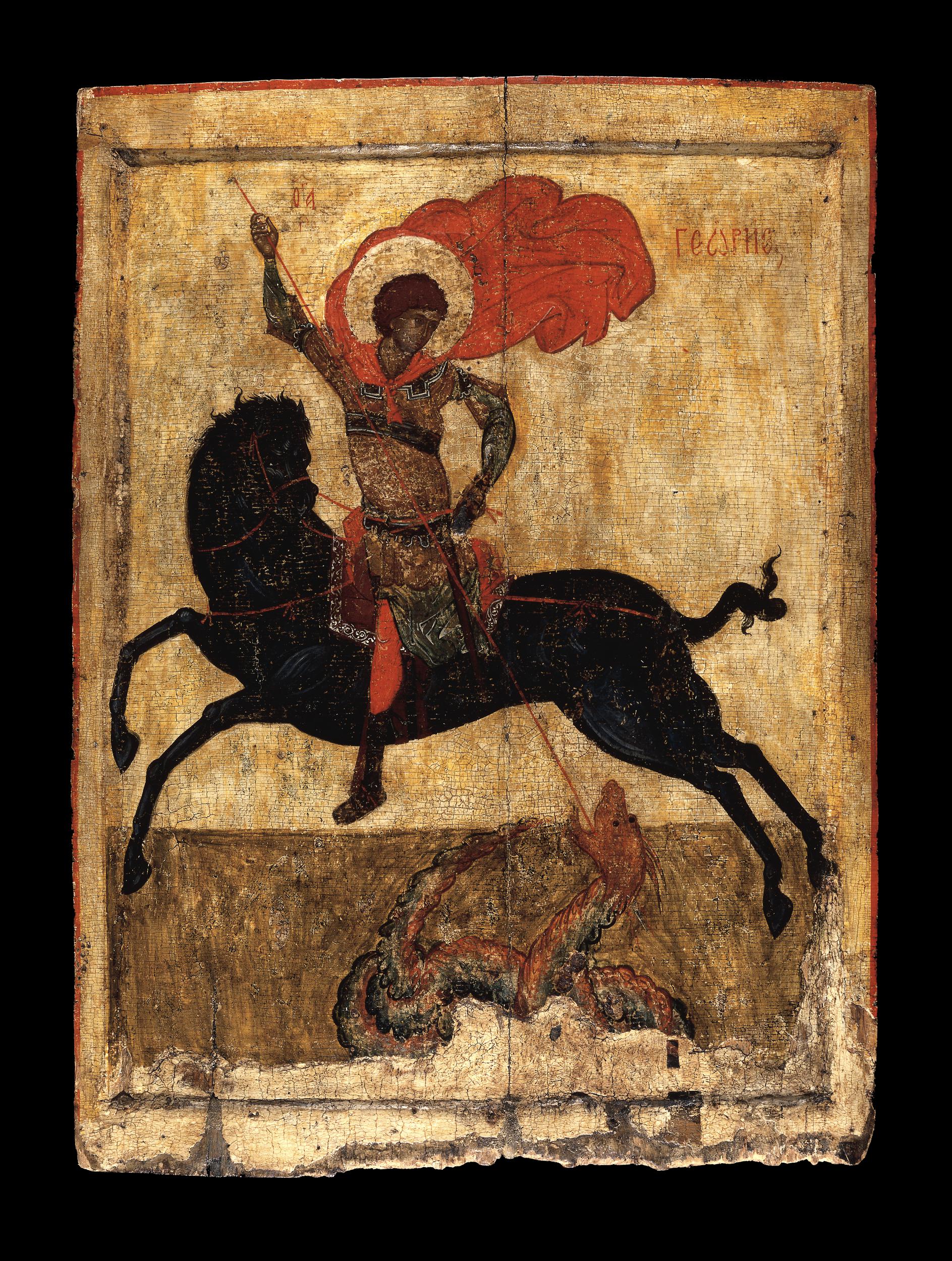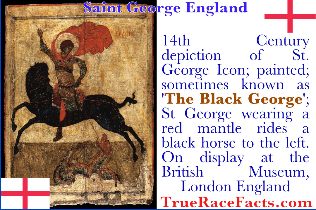 St. George, (flourished 3rd century—died, traditionally Lydda, Palestine [now Lod, Israel]; feast day April 23), early Christian martyr who during the Middle Ages became an ideal of martial valour and selflessness. He is the patron saint of England and of Georgia, Russia and is venerated as one of the 14 Auxiliary Saints (Holy Helpers). He is normally depicted as a brown-skinned so-called BLACK man, but if you go to racist Wikipedia, they only show him being Caucasian.