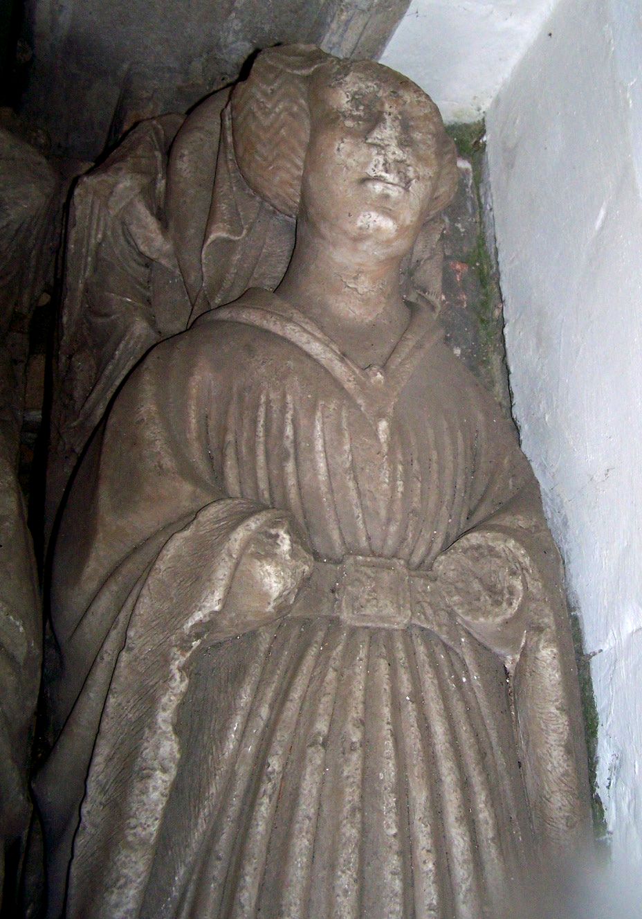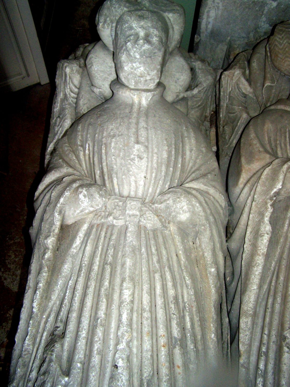 Margaret’s effigy survives in far better condition. Her face retains a prominent nose and full lips, allowing the sculptor’s original work to remain legible.