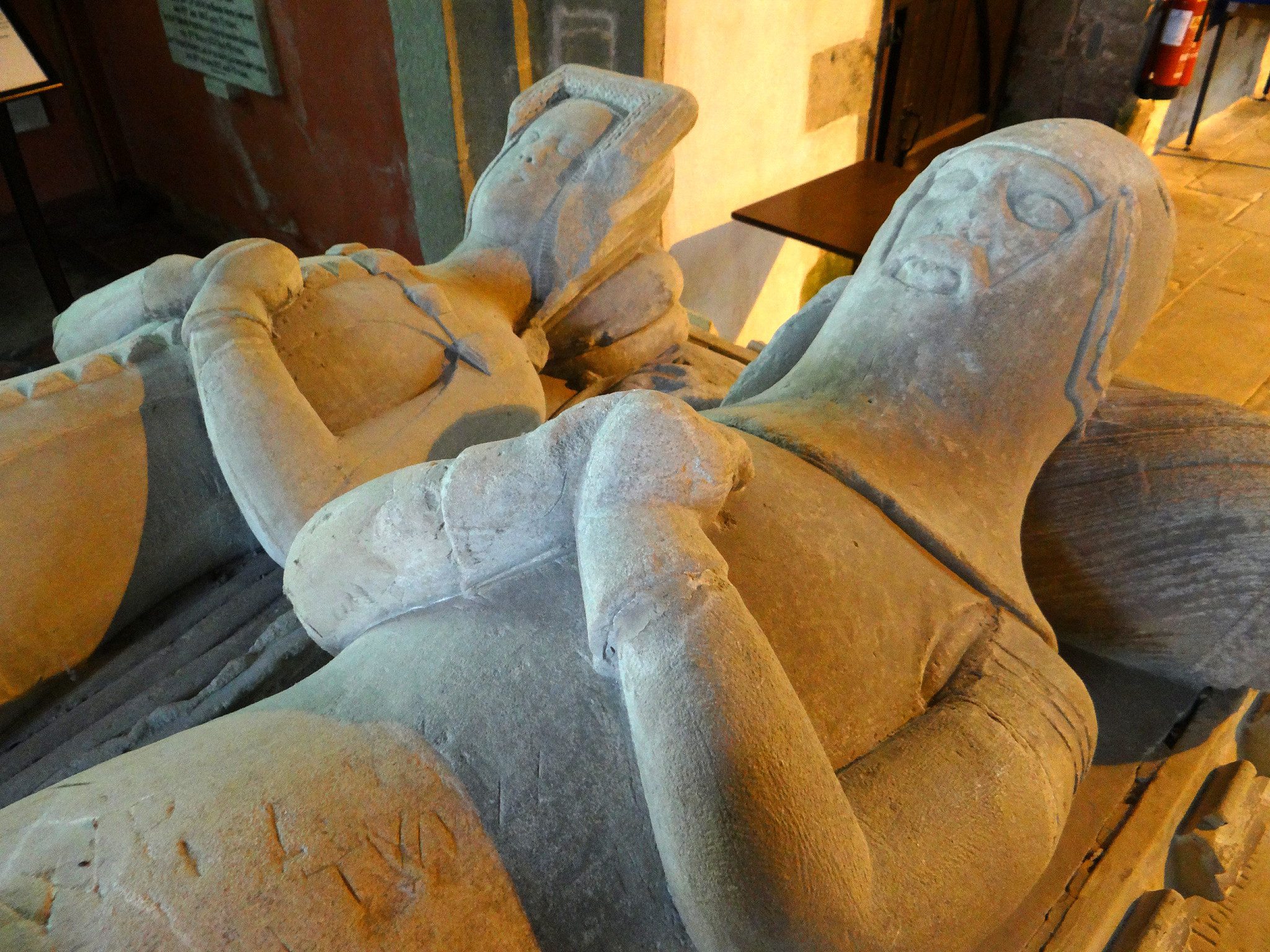 The effigies are believed to date from around 1375, several decades after Sir John’s death, and are among the finest medieval monuments in the region. They are important not only because of their connection to the Joce family and the lordship of Clearwell, but also because of what remains visible in the faces despite centuries of damage.