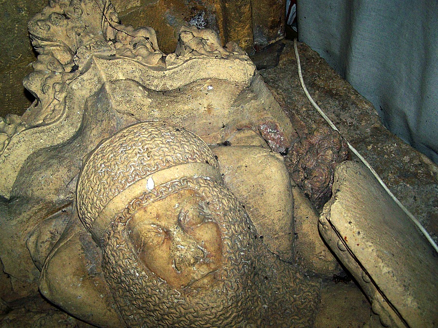 Sir Richard’s son, also Sir Richard de Goldsborough (d.1333), rests nearby. His effigy bears the same wounds: the same flattened nose, the same scratched-down lips, the same obvious attempt to disguise a dark-skinned lineage.