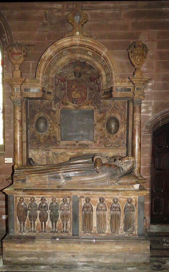 The manor then passed down through the Devereux family. In 1549 Walter Devereux was created Viscount of Hereford and in 1611, his son, Sir Edward Devereux, was created 1st Baronet of Castle Bromwich by King James I. He is attributed with building the first Castle Bromwich Hall. (Evidence does, however, suggest that a medieval predecessor may have stood on the same site). Sir Edward is buried with his Catherine beneath an elaborate monument at Aston church. [2]
