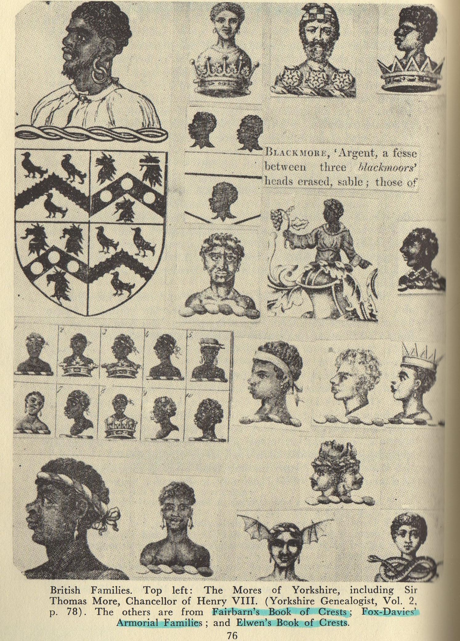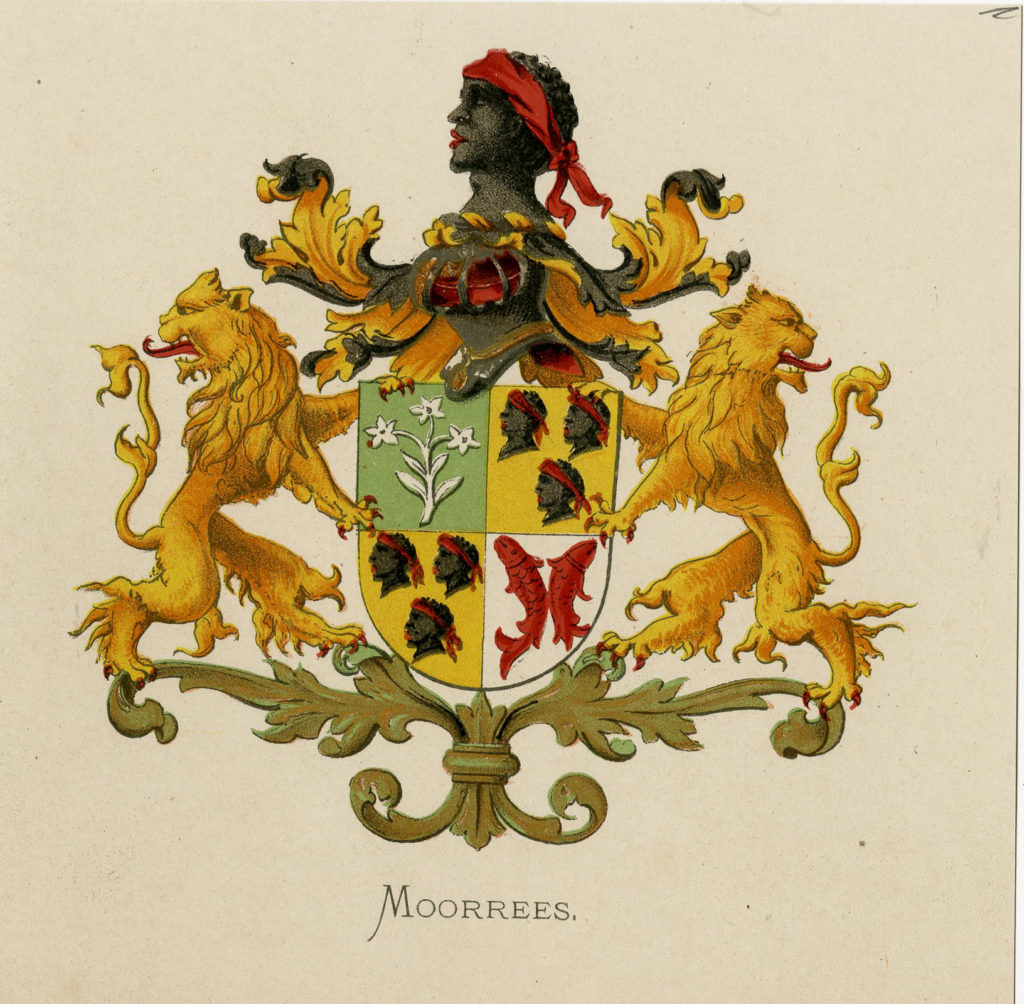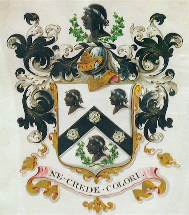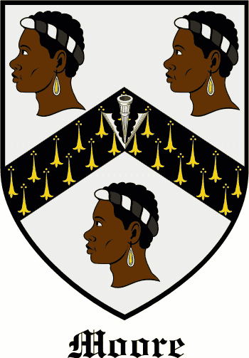 This family Crest was commissioned by Sir Thomas More wife and daughter. The name More comes from the term BLACK.