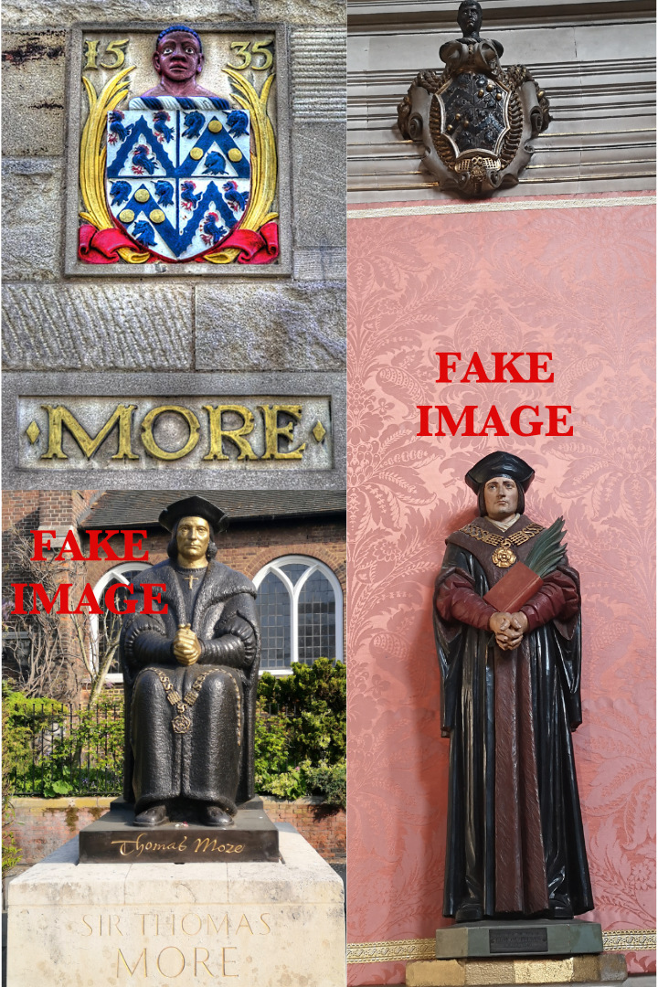 When you dig further, you will discover that they claim his portraits got burned, and there is a dispute regarding the authenticity of his paintings in a book called “The likeness of Thomas More; an iconographical survey of three centuries” and historians always fail to explain why his family crest feature a dark brown, Judean man. NOTE: Sir Thomas More was the landowner for most of the Chelsea area, yet his family seemed to have vanished. I was researching in the local library on Kings Road, Chelsea, London because they had many books on More. Still, recently I went back and was told by the Liberian that the out-of-print books that showed his vast land in London were now off the display shelf, and I’m told they are out of reach to the public in the basement. It could be a coincidence, but I highly doubt it. The gatekeepers fear that I might find something they forgot to hide.