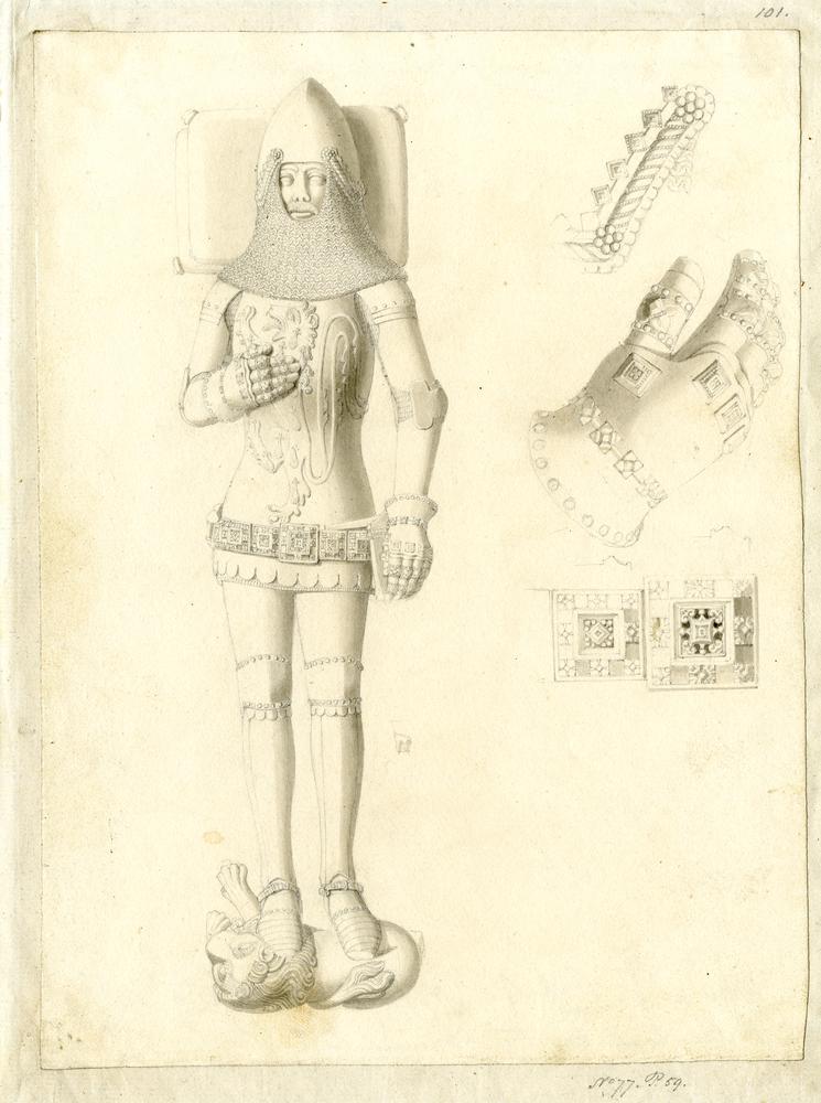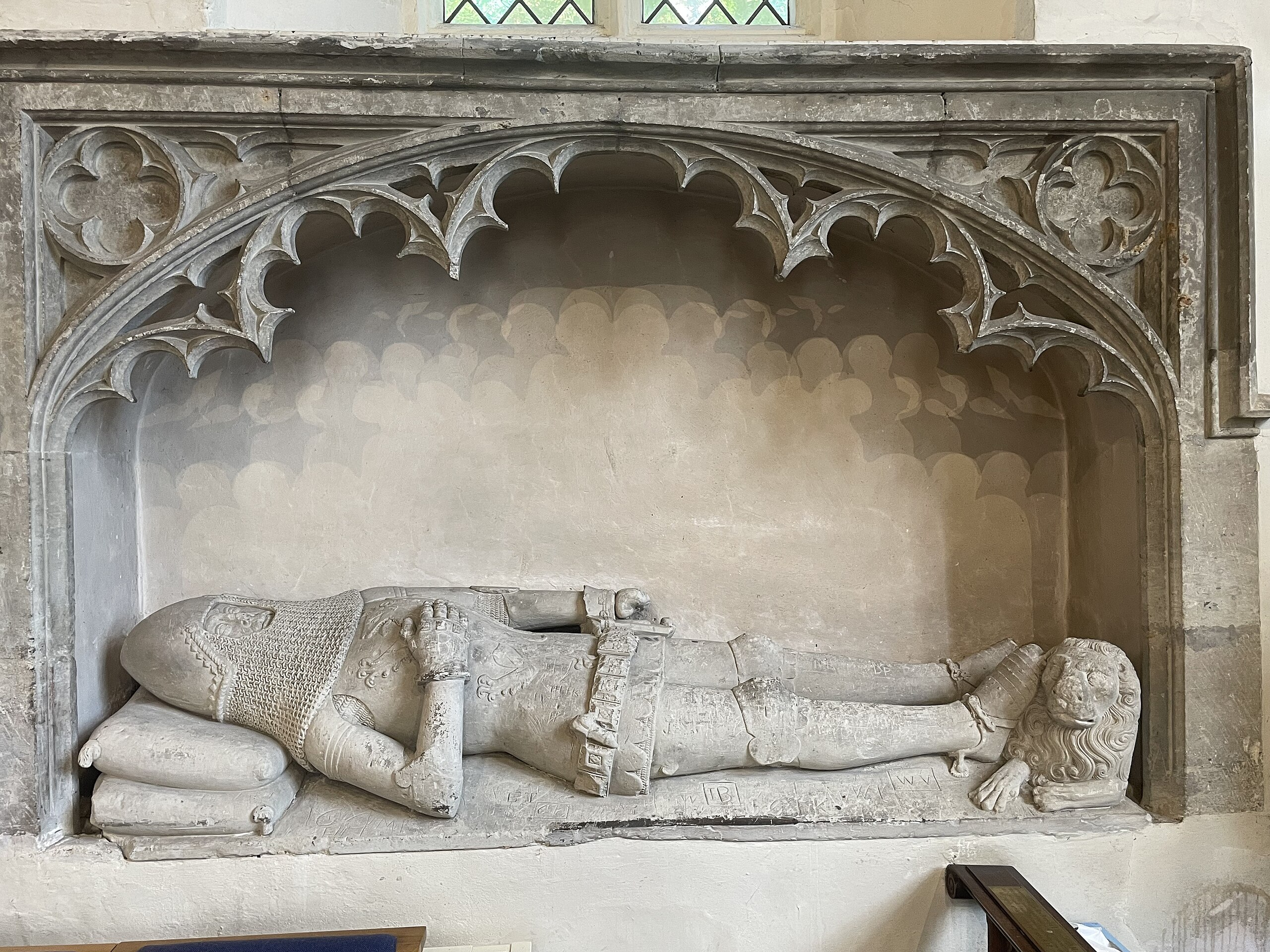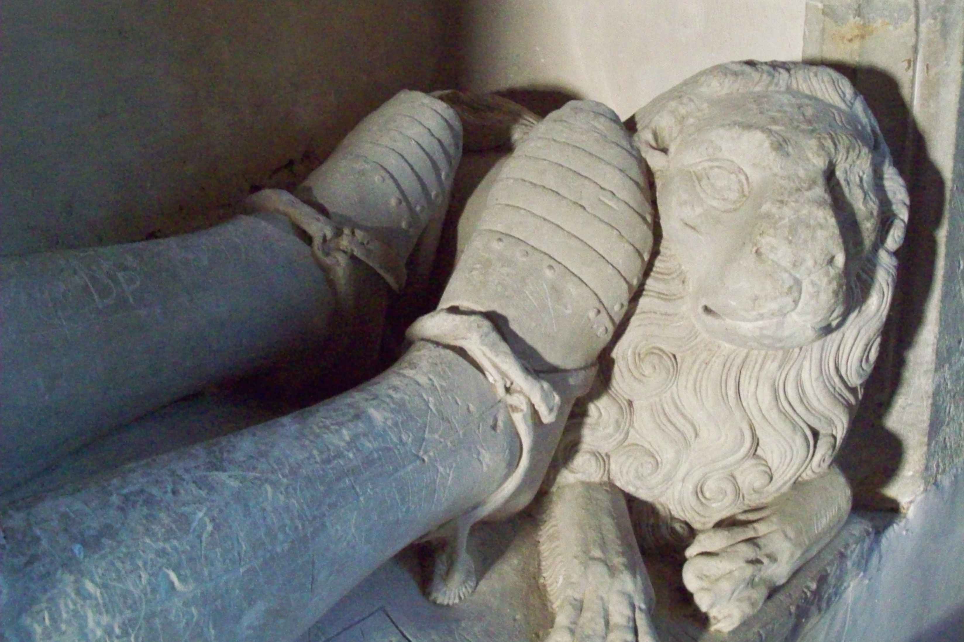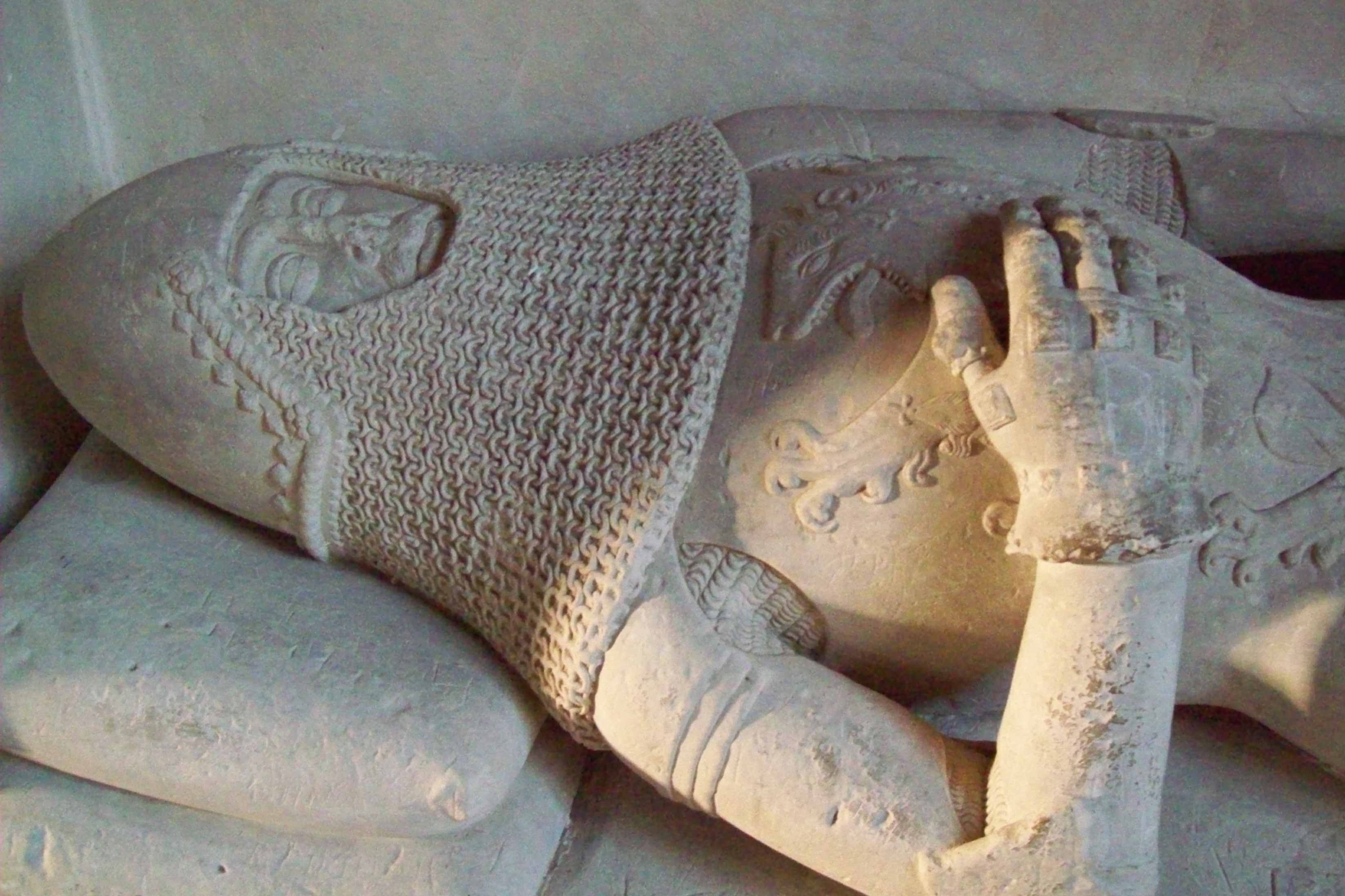 His armour is carved with care. His body is intact. His position within the church confirms recognition by both secular and ecclesiastical authority.